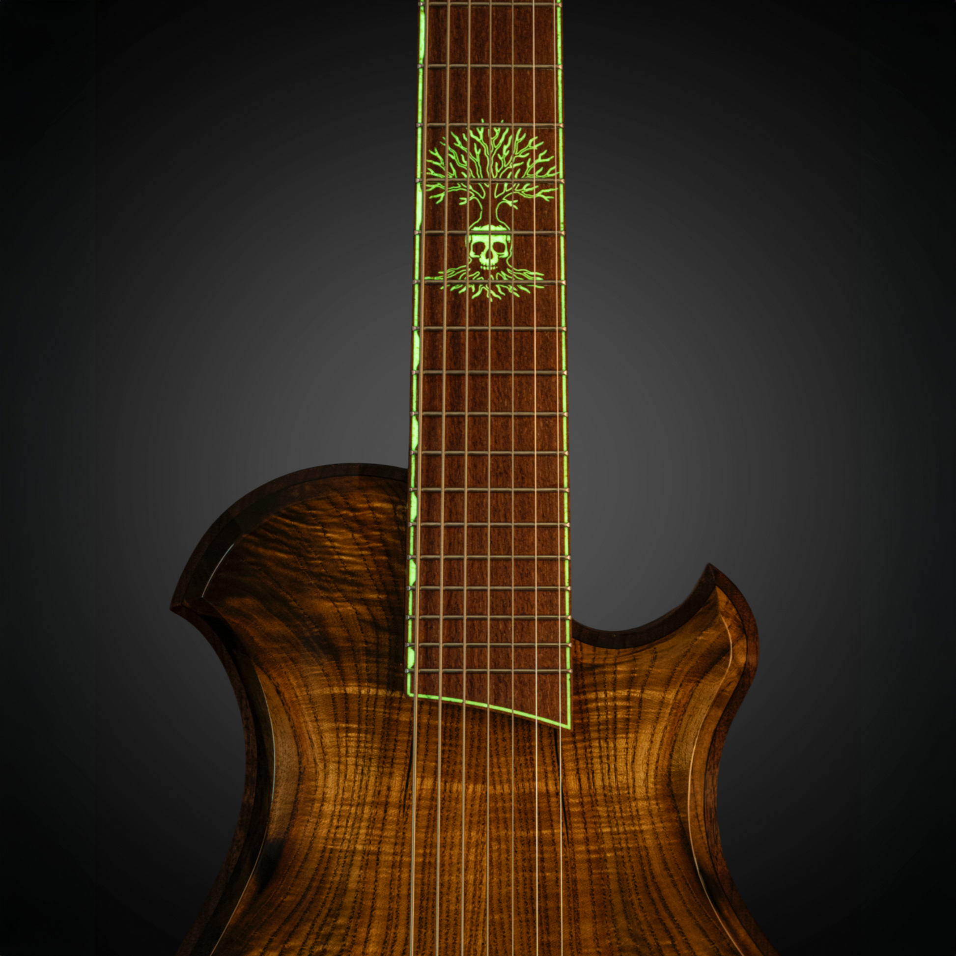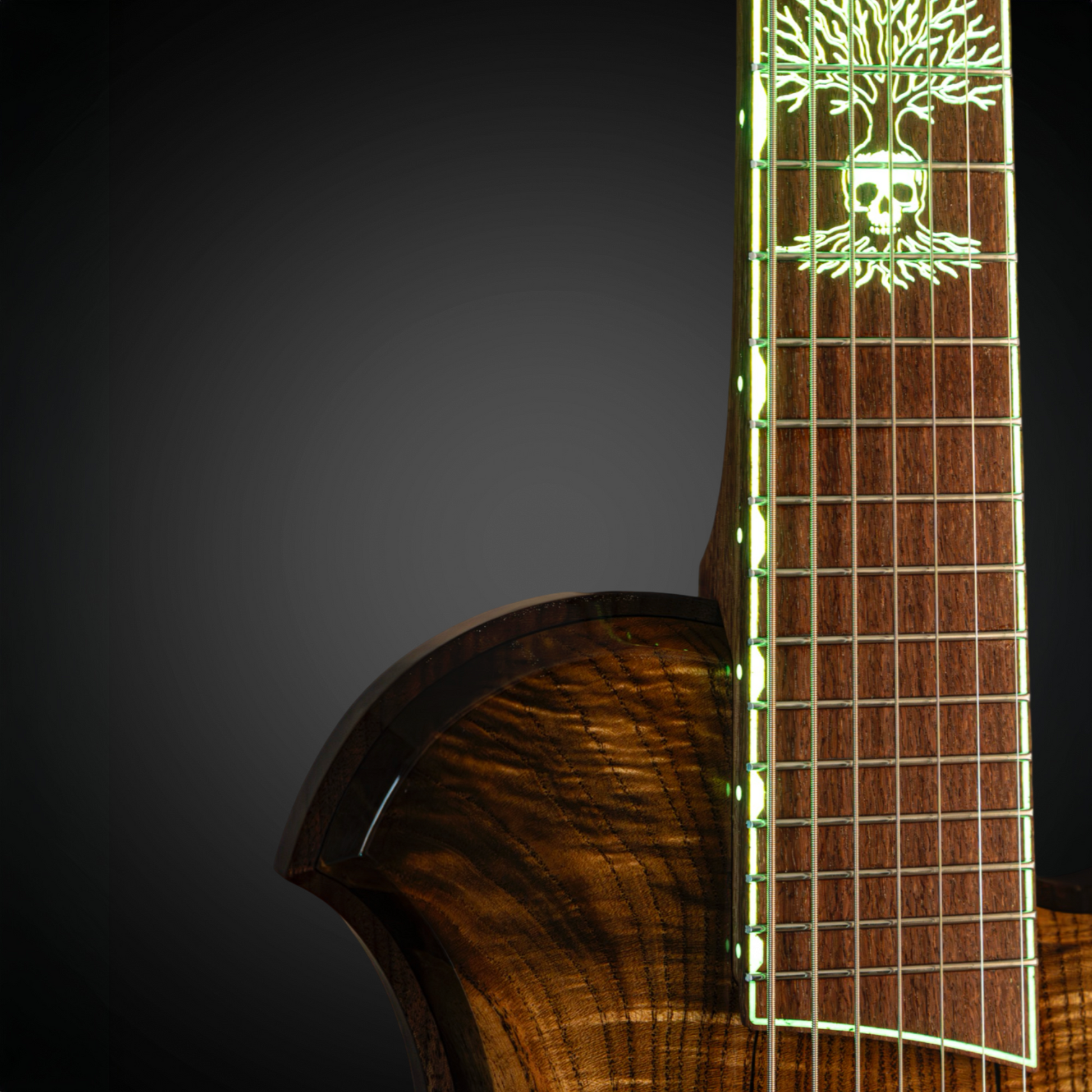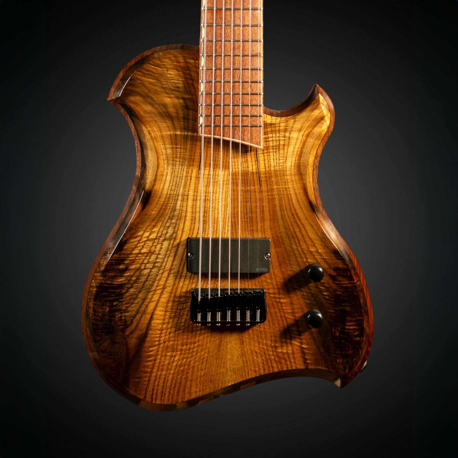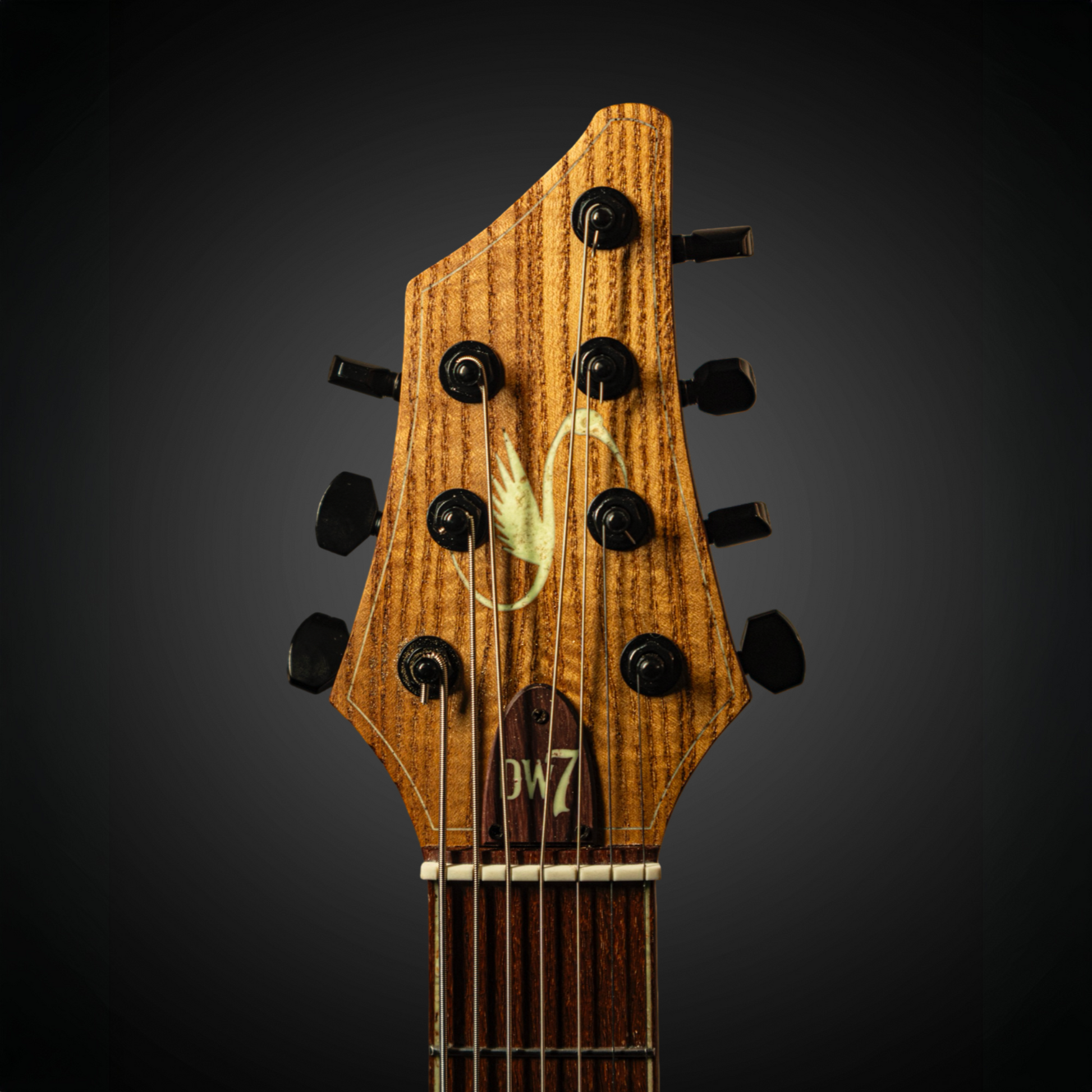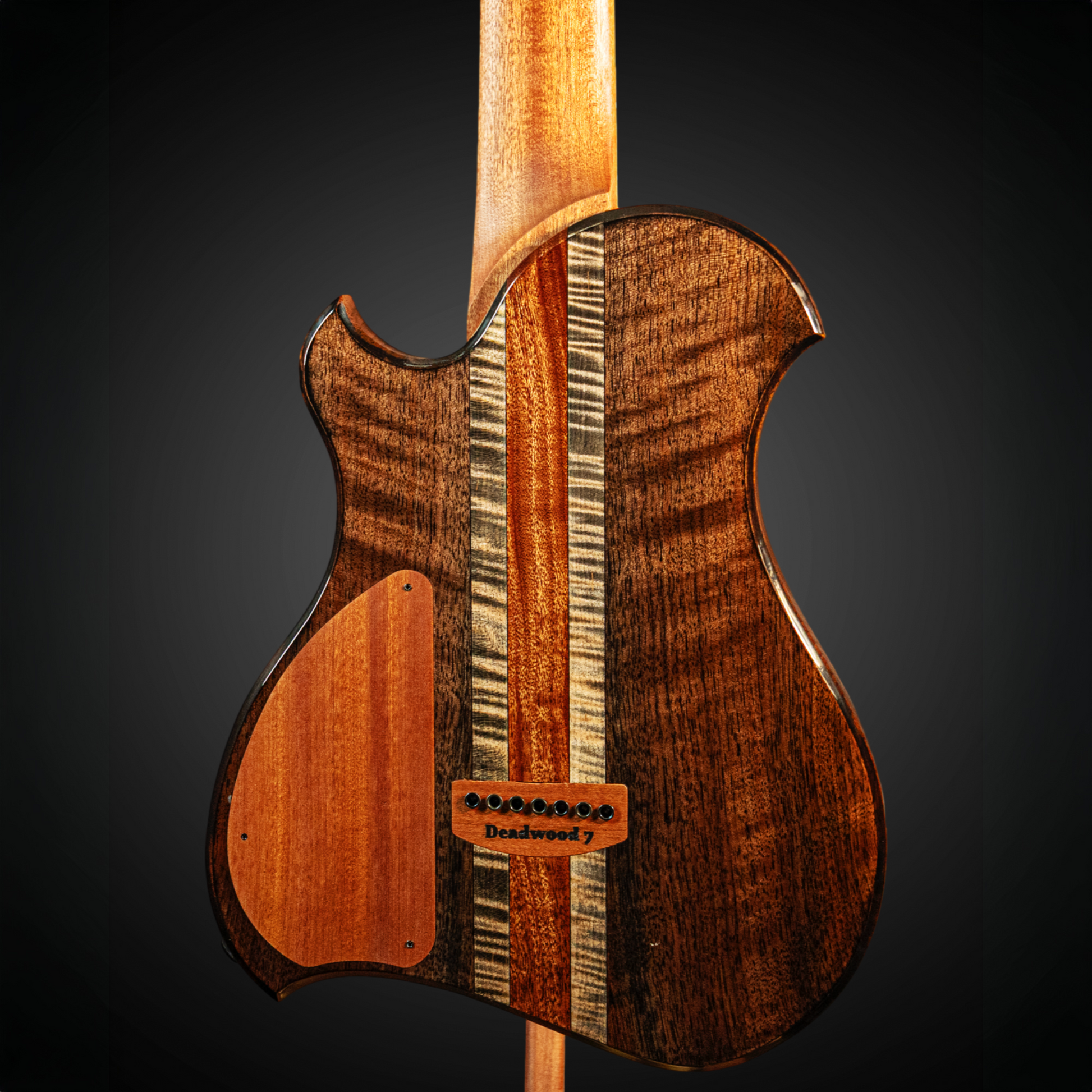 The Deadwood-7 is not a production guitar. It is a hand-built, boutique instrument, crafted one piece at a time. Every line, every carve, every joint was shaped in a woodshop—not on an assembly line. This is the kind of guitar that still remembers the hands that made it.