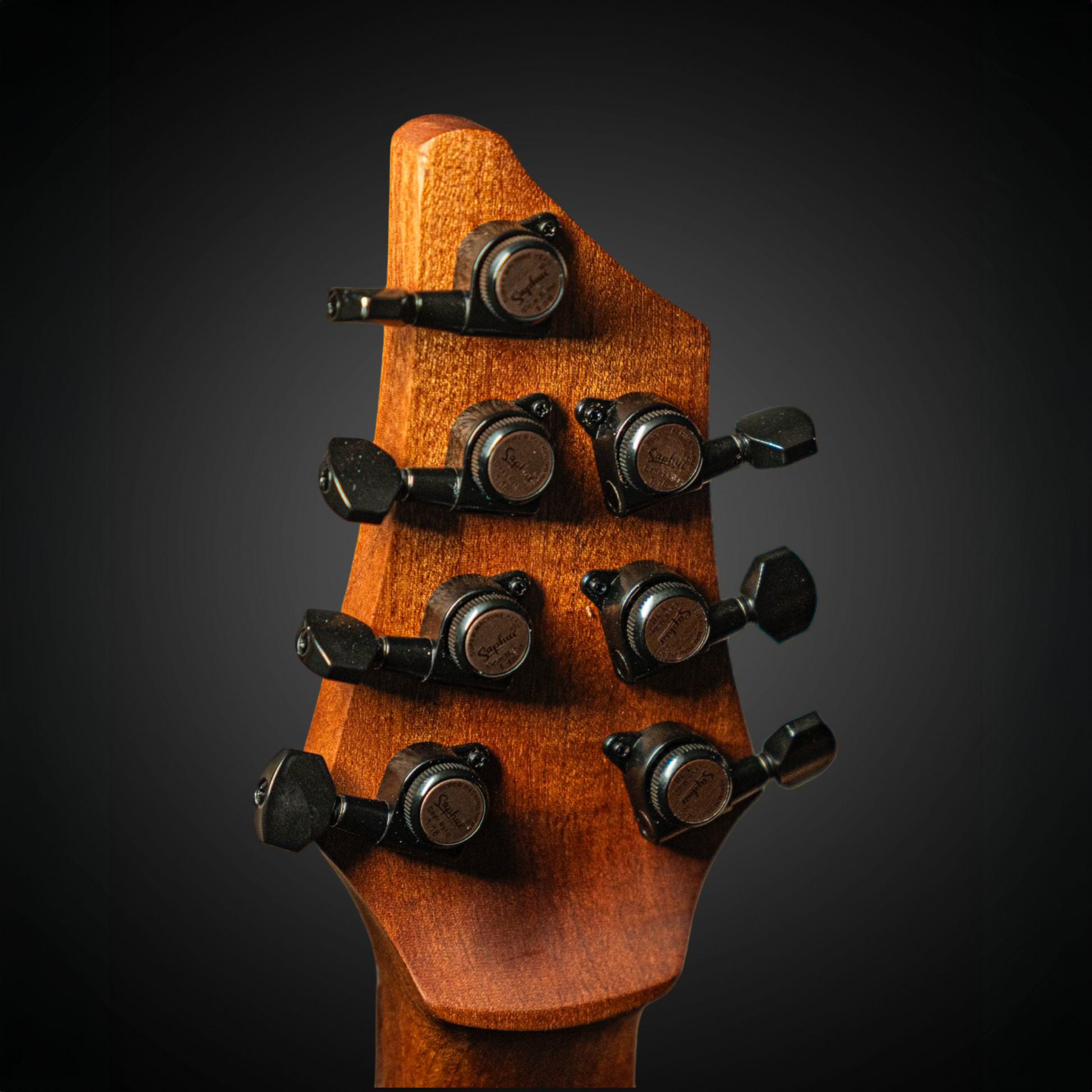 Designed from the ground up as a true 7-string baritone, its 28" scale length delivers iron-clad tuning stability and low-end clarity, whether you’re in Drop A, Drop G, or exploring uncharted tunings. There is no flub. No collapse. No guesswork. The Deadwood-7 plays heavy with authority.